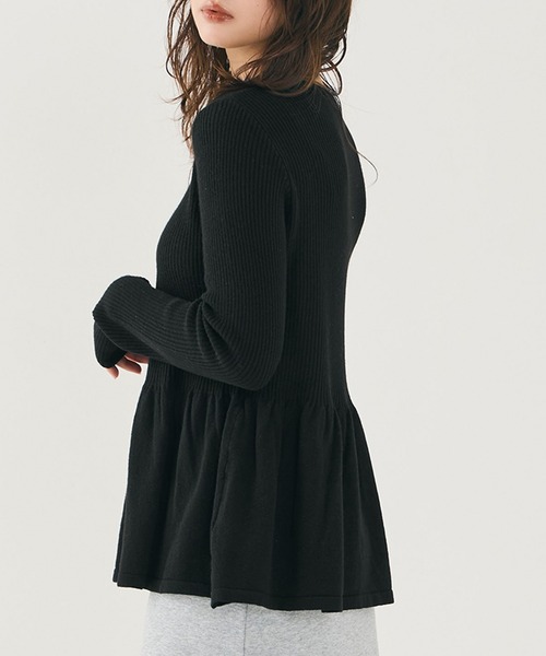 華やかにスタイルアップ。ペプラムギャザーニットトップス
