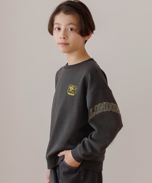 胸元と袖に施したプリントが目を惹く、キッズ用スウェットトップス。