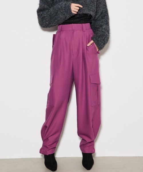 キーワード:カーゴパンツ レディース フルレングス レギュラー ワイドパンツ 無地