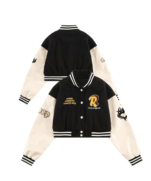 参考商品名:【HOOK】アメカジワッペン刺繍スタジャンジャケット クロップド丈