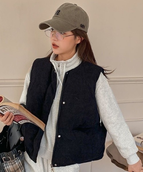 参考商品名:コーデュロイノーカラー中綿ベスト