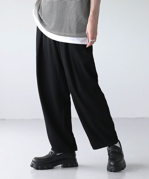 キーワード:パンツ メンズ ウエストゴム テーパード ハイウエスト フルレングス ワイドパンツ 無地