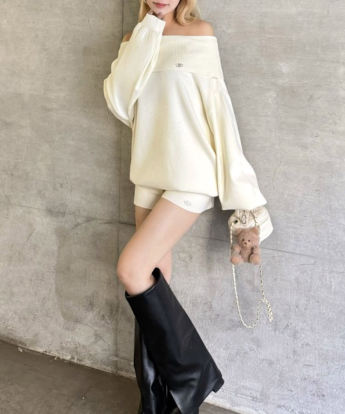 同素材のパーカー【74546935】やオフショルダートップス【74546833】とのセットアップ着用もおすすめ。