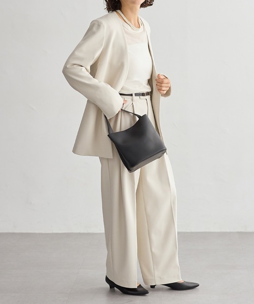 パンツは程よくワイドなリラックスシルエットで抜け感をプラス、ストレッチの効いた素材で着心地楽ちん◎