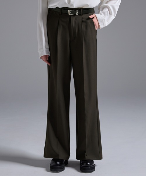 キーワード:パンツ メンズ ハイウエスト フルレングス フレアパンツ ワイドパンツ 無地