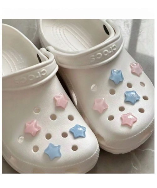 Crocs(クロックス)のホール部分に簡単に取り付けられ、自分だけの一足にカスタマイズできます。ころんとしたフォルムとやさしいカラーで、カジュアルコーデのアクセントに。