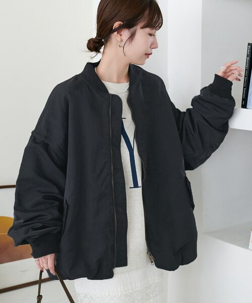 アレンジ自在、季節の変わり目にぴったりな春アウター・程よく丸みのあるボンバーシルエットで、ラフすぎず大人っぽい印象に。