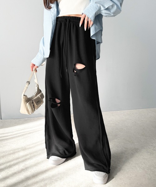 参考商品名:《Javaジャバコラボ》チェンジングサイドラインダメージ加工ワイドスウェットパンツ(裏毛)