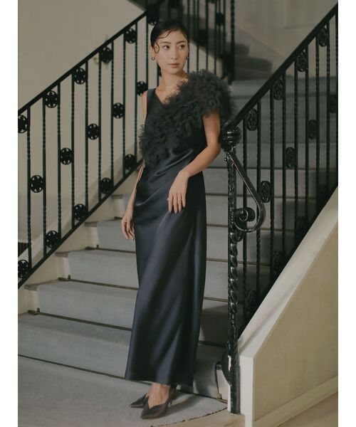 ソンイさんコラボアイテム。ドレープが美しいサテンキャミワンピースとチュールをふんだんに使用したショールのSETアイテム。