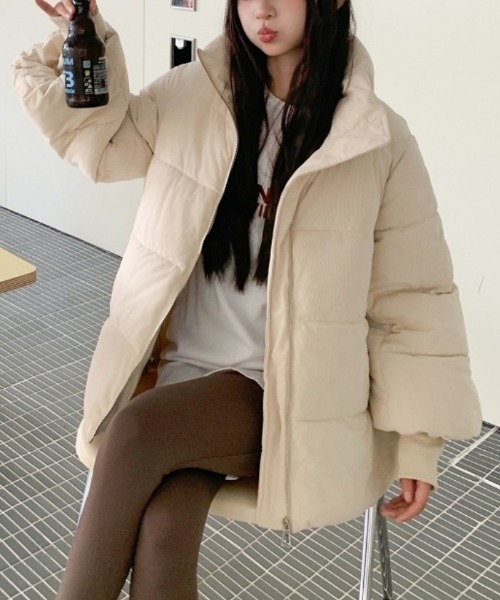 首元まで包み込むスタンドカラーとコーデュロイ素材で防寒性も抜群◎