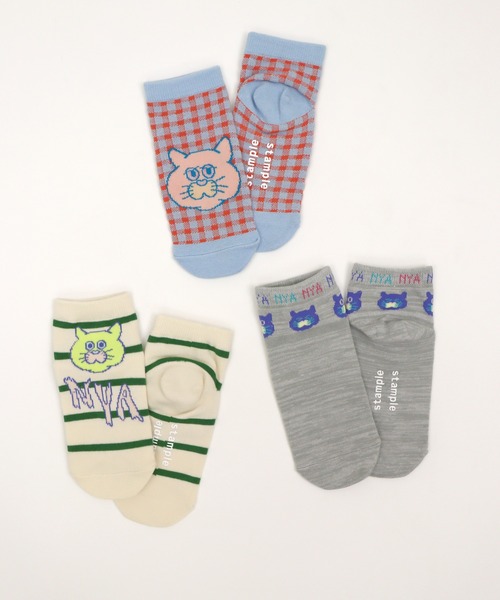 ゆるカワねこがかわいいソックス♪思わずクスっとなる表情がかわいいゆるカワねこが登場!!チャック・ボーダー・総柄の3柄なので選ぶのが楽しくなりそう♪
