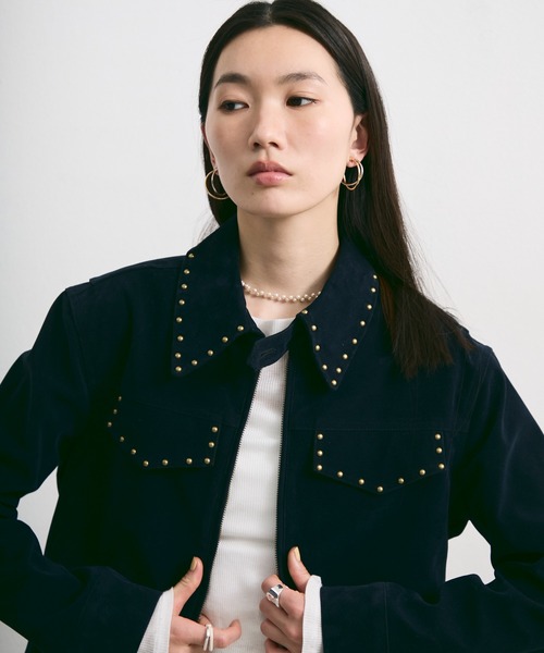 スエード調素材にスタッズディテールを効かせた、存在感のあるジャケット。