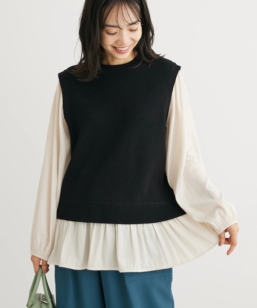 参考商品名:とろみ布帛ドッキングニットチュニック