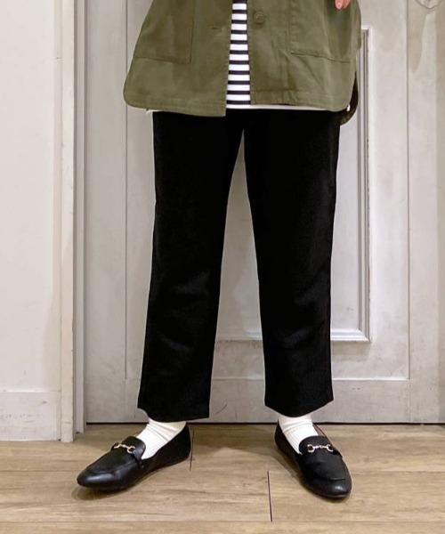 キーワード:パンツ レディース ウエストゴム クロップド スタンダード テーパード ハイウエスト 無地