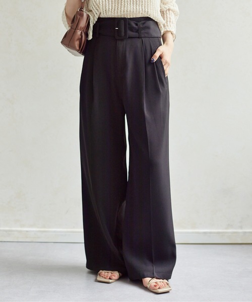 参考商品名:ベルト付きハイウエストタックパンツ