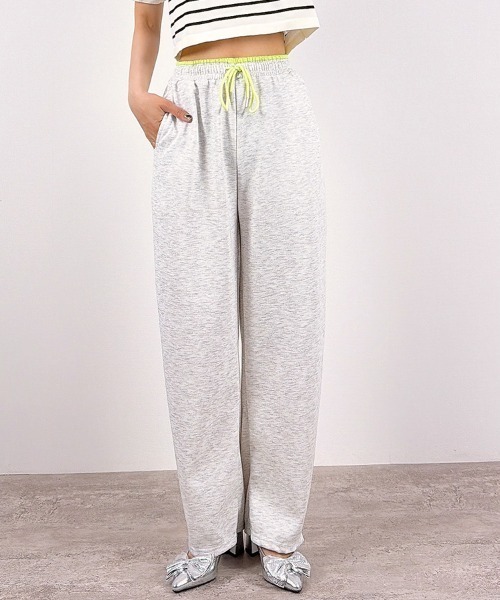 2026年春夏新作!ウエスト配色ボンディングスウェットカーブパンツ【配色ウエストがアクセント楽ちん×今っぽいバレルシルエット】■セットアップ可能アイテム♪