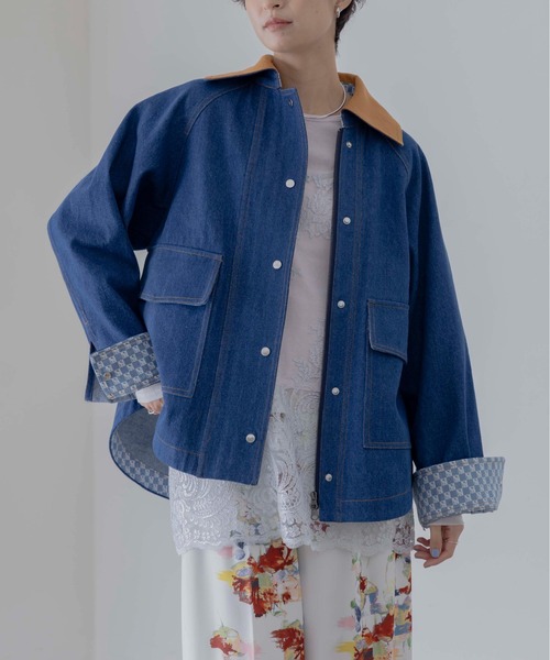 ・素材感 : デニム/洗い加工されたデニムを綺麗めに仕上げています。分厚くもなく薄すぎない。しっかりめの型崩れしなさそうな素材です。