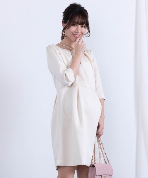 春先や秋冬のフォーマルシーンにぴったりの7分袖ワンピース