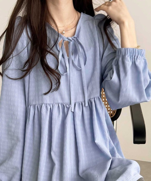 参考商品名:前後2WAYリボンペプラムジャガードチュニックブラウス