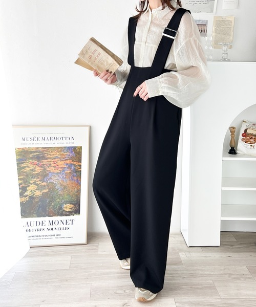 参考商品名:大人のワイドストレート。アシメバックルベルトサロペット