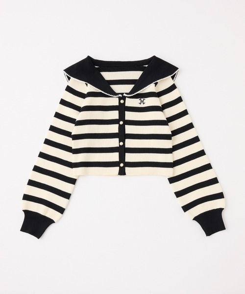 大きめのセーラー襟が目を惹く、ガーリー感たっぷりのニットカーディガン。