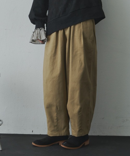 キーワード:チノパン レディース ウエストゴム テーパード ハイウエスト フルレングス ワイドパンツ 無地