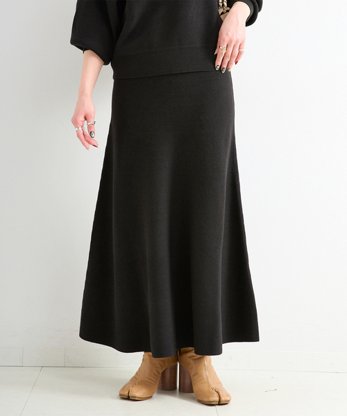 伸縮性がありドレープで着映える素材感になっています。身体のラインを拾いすぎないようにフレアシルエットにしており、女性らしい着こなしになります。