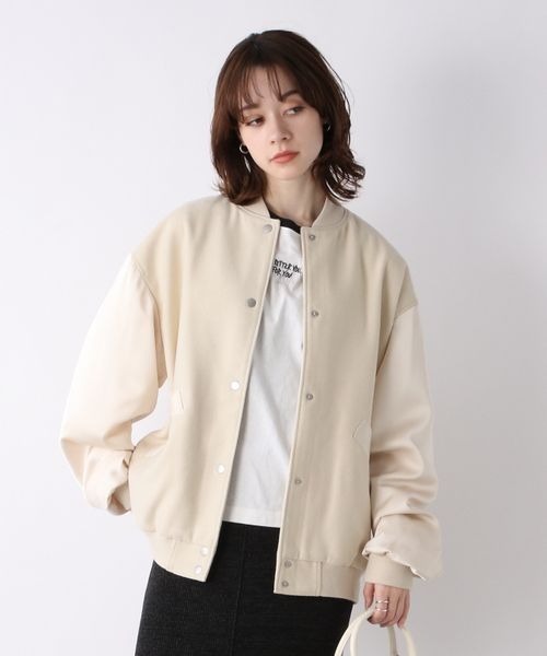 素材:【オフホワイト(08)】 表地:ポリエステル87% 毛13% 別布:ポリエステル100% 裏地:ポリエステル100% リブ:ポリエステル98% ポリウレタン2% 【ブラック(09)】 表地:ポリエステル78% 毛13% アクリル3% レーヨン3% ナイロン2% ポリウレタン1% 別布:ポリエステル97% ポリウレタン3% 裏地:ポリエステ