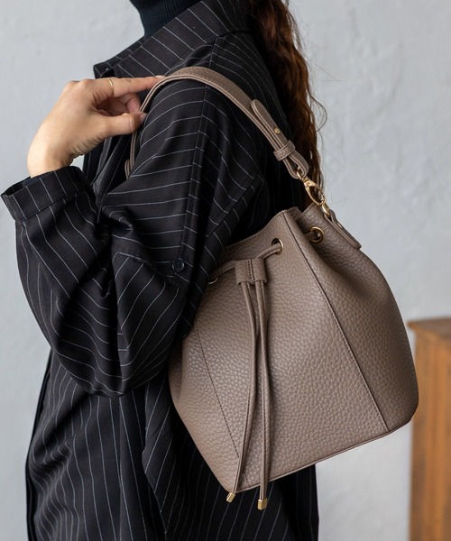 巾着2WAYハンドバッグシンプル×上品なのにこなれ感、