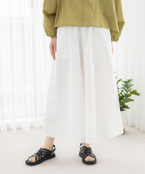 キーワード:パンツ レディース ウエストゴム クロップド ハイウエスト フレアパンツ ワイドパンツ 無地
