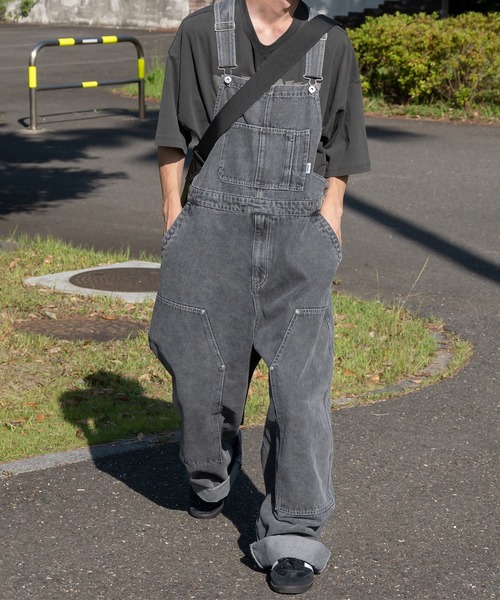 参考商品名:ケミカルウォッシュダブルニーサロペット