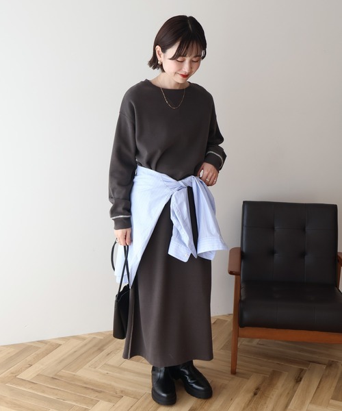 暖く滑らかなスムース素材で仕上げたデザインワンピース。
