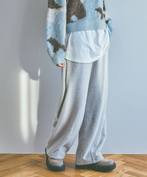 ふんわりとした肌触りとトレンドのワイドシルエットが魅力のフワフワフェザースウェットパンツ。