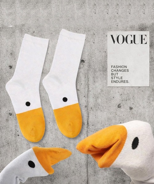 思わず二度見する、あひるフェイスが印象的なデザインソックス。