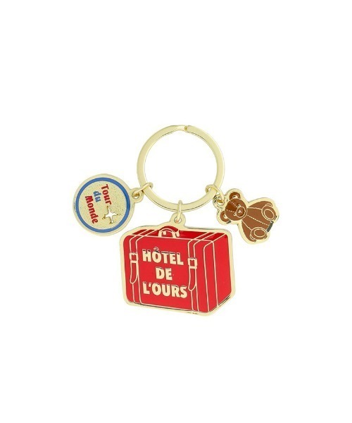 お気に入りのぬいぐるみを添えて、非日常のワンシーンを自分らしく楽しむ。そんな旅の瞬間をイメージしたデザインです。レッド(A<赤トランク>)、ブルー(B<地球>)、ライトブルー(C<水色 クマ×トランク>)の全3色。トランク、地球儀、ホテルのロゴマークの3つをテーマに、それぞれ3種のモチーフを連ねています。金属製で大ぶりなサイズ感が華やかなキーホルダーは、鍵やポーチ、バッグにつけて、持ち物のアクセントにもなります。