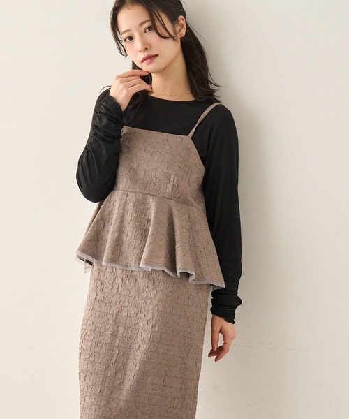 立体感のあるふくれジャガード素材が、装いに奥行きと表情をもたらすキャミワンピース。