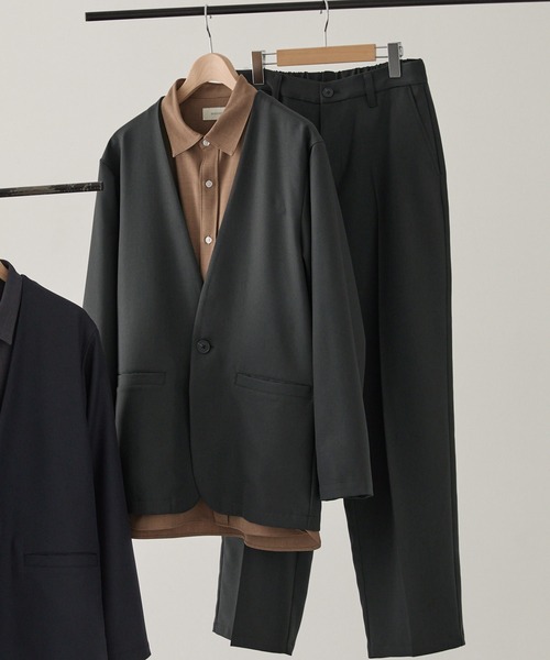 機能性と品のある表情を兼ね備え、デイリーからきれいめシーンまで幅広く活躍するセットアップ素材に仕上げています。