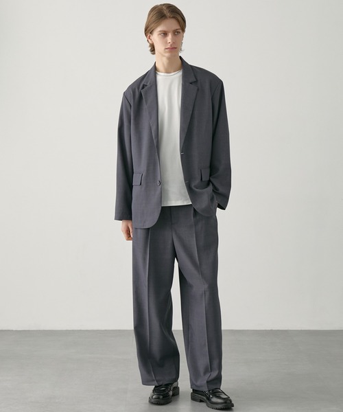 セットアップでの着用はもちろん、ジャケットはTシャツやカットソーに羽織るだけで、程よくきちんと感のあるきれいめカジュアルスタイルに仕上がります。
