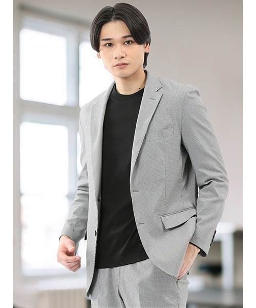 クロスストレッチ スリムフィット 2ボタンジャケット 千鳥(セットアップ可能)