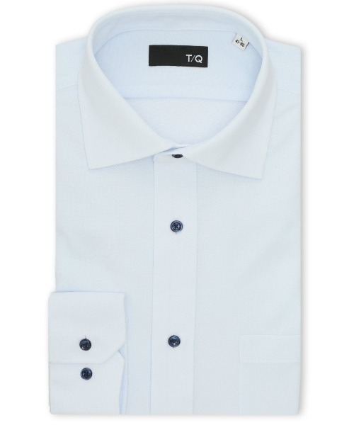 表面感のあるドビーの織り柄(無地)です。衿型は衿開きが大きく、ネクタイとのバランスが取りやすいワイドカラーを採用しています。タイドアップには横に広がった逆三角形で、ボリュームのある結び目が綺麗なウィンザーノットが好相性です。