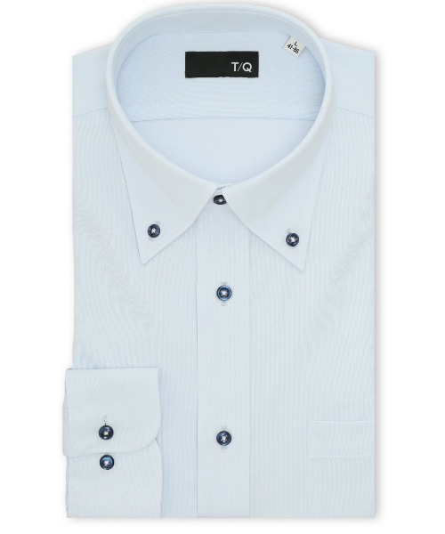 表面感のあるドビーの織り柄(無地)です。衿型はアンタイド(ノーネクタイ)でも衿立ちよく収まり、オフィスカジュアルにもぴったりなボタンダウンを採用しています。タイドアップには、結び目が小さくすっきりとした印象のプレーンノットが好相性です。