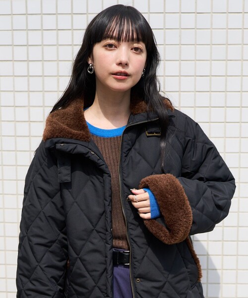 参考商品名:ボア付き キルト スタンドコート/キルトコート