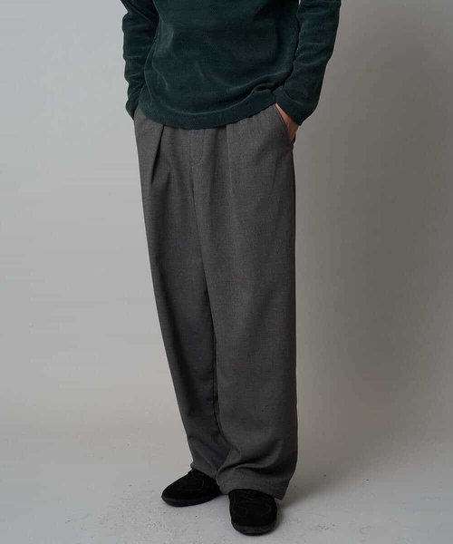 全体にゆとりを持たせたワイドシルエットで、裾までまっすぐ落ちるようなラインが特徴です。
