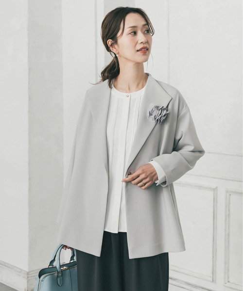 きれい見えする素材感は、カジュアルスタイルから通勤、セレモニーアイテムとの組み合わせまで対応し、ちょっとした畏まったシーンにも重宝する大人の羽織りです。