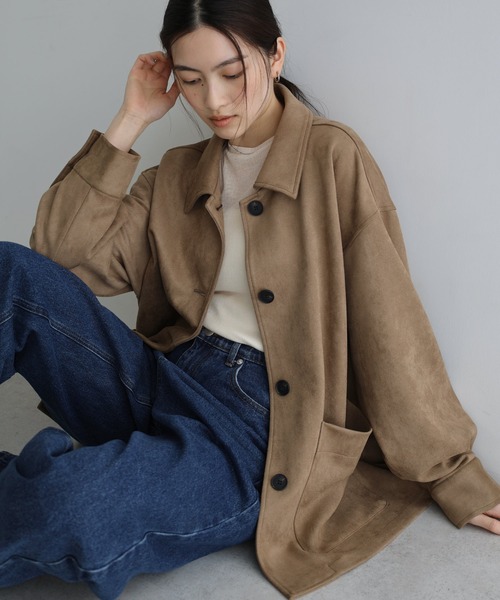 表側はスエード調、裏側には伸縮性のあるポンチ素材を使用。