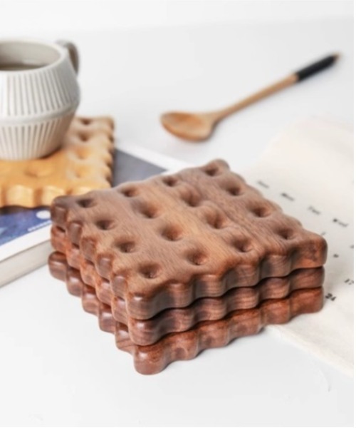 こんがり焼けたビスケットをそのまま再現したような、遊び心たっぷりのウッドコースターです。