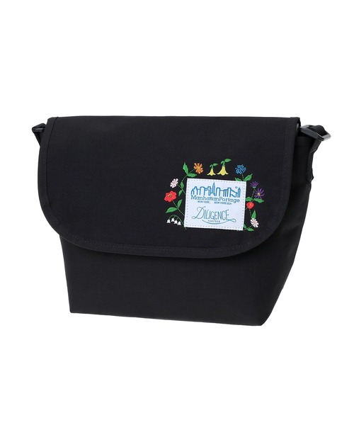 特徴的なコラボラベルには、Manhattan PortageのスカイラインとDILIGENCE PARLOURのロゴが表現され、更に華やかなフラワーの刺繍が施されています。