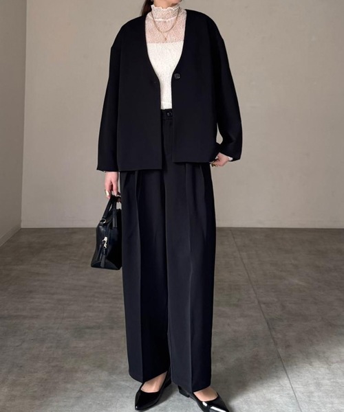上下セットで着用すれば、統一感のある洗練されたスタイルが即完成。