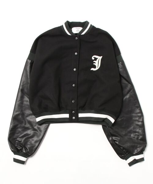 素材:本体:ポリエステル70% アクリル10% 毛8% レーヨン5% ナイロン4% 綿3% 袖:合成皮革 裏地:ポリエステル100% リブ:綿83% ポリエステル16% ポリウレタン1% 刺繍:アクリル100%