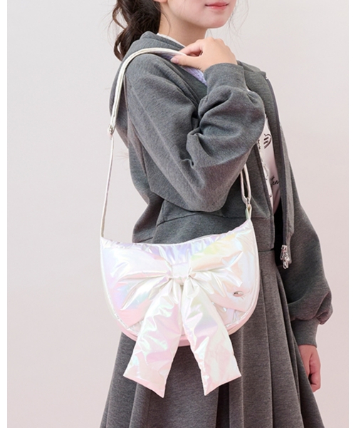 トレンドのリボンモチーフをぷっくりと、立体感のあるリボンに仕上げ、正面にあしらったキュートなショルダーバッグです。